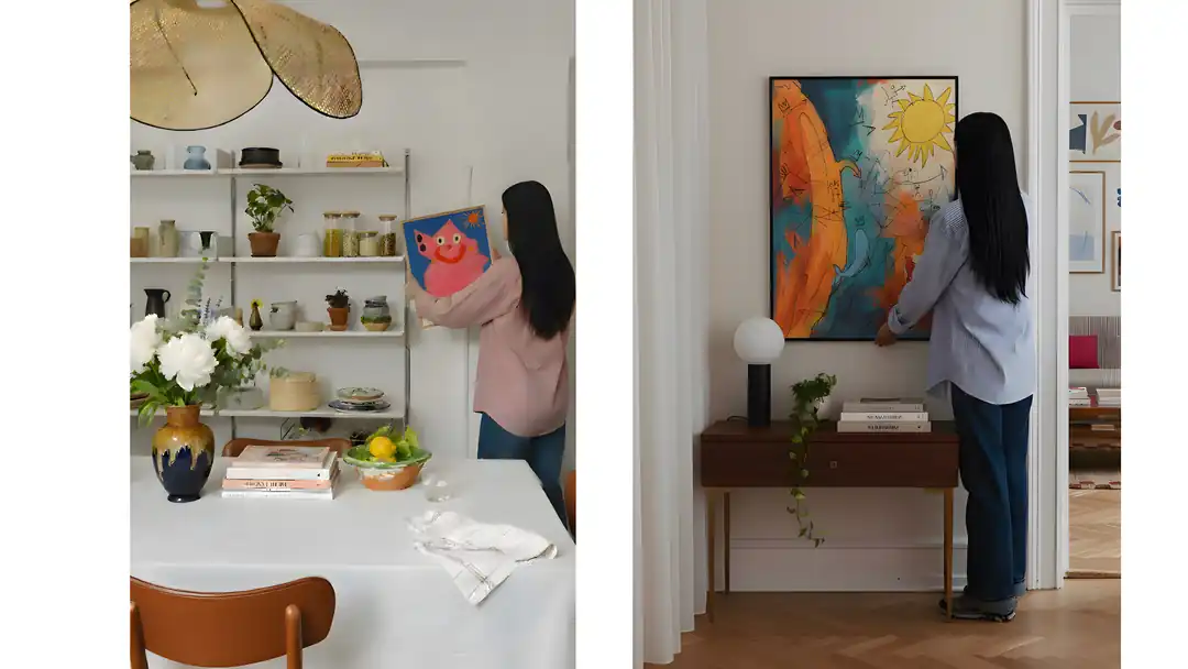 Çocuk çizimlerinin saf enerjisi, modern ve keskin hatlı mobilyalarla güçlü bir denge oluşturur. Bilinçli kontrast sayesinde çizimler mekânın doğal bir parçası haline gelir. “ŞANS” tablosundaki o oyunbaz ve geometrik yaklaşım veya “ÇİZMELİ PEMBE”nin naifliği, minimalist bir salonun ciddi havasını kırarak mekanı daha davetkar kılar. Bilinçli kontrast sayesinde çizimler mekânın doğal bir parçası haline gelir.